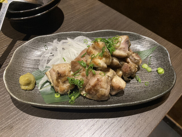 いい焼き加減の鳥に柚子こしょうを付けていただきます。