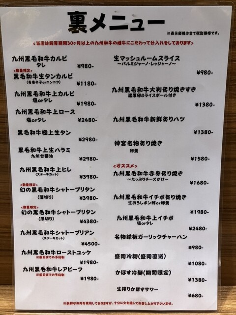 メニューは500円メニュー+裏メニューという感じで、リーズナブルに楽しむこともできます。