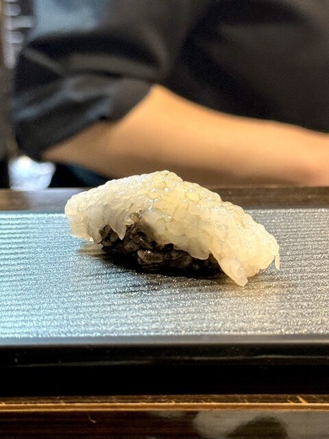 黒いシャリに透き通るイカがのっていて、噛むほどに旨みがじんわり広がります^ ^