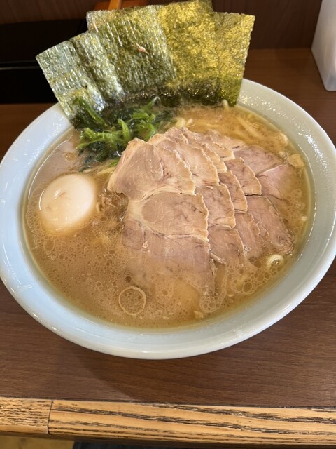 かなり久しぶりに寿々喜家さんに来ました。朝早くからやってます。今日は平日10時過ぎで来店並ばずに入れました。チャーシュー麺大盛りに味玉で食べました。少し甘味を感じるスープです。チャーシュー大きくて柔らかいです。味玉は半熟です。全てが美味しいお店です。卓上にあるコショウやニンニク、とうがらしで味変しても美味しいです。家系ラーメンでは寿々喜家さんが1番好きなお店です。