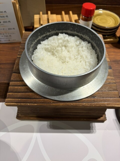 シャトンブリアン定食に天使の海老フライを単品で付けました。ご飯は釜で出て来ます。量は結構有ります。味も美味しいです。シャトンブリアンの肉は柔らかくて塩で食べてもソースで食べても凄く美味しいです