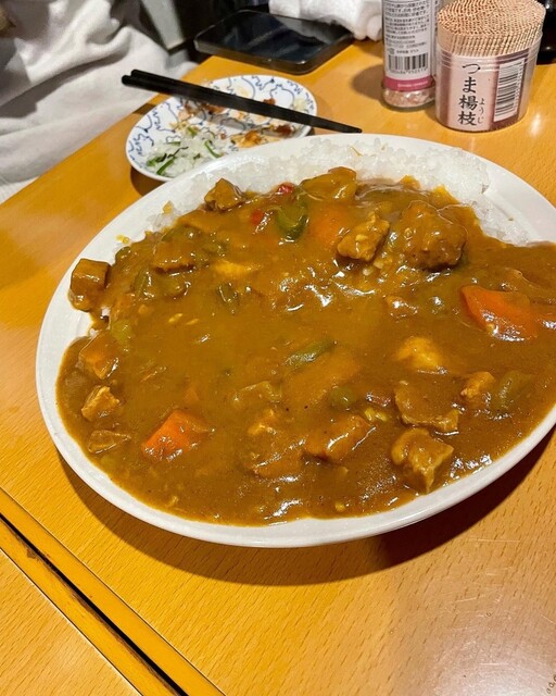 季節は春。メニューにホタルイカを見つけて嬉しい驚き。鮮度のよい刺身の盛り合わせや、丁寧に仕上げられたとんかつ、ジューシーなトンテキも絶品。ピーマンを使ったご飯やカレー、ケチャップ味が懐かしいスパサラなど、どれも手間がかかっていながら家庭的な温かさを感じるラインナップでした。
