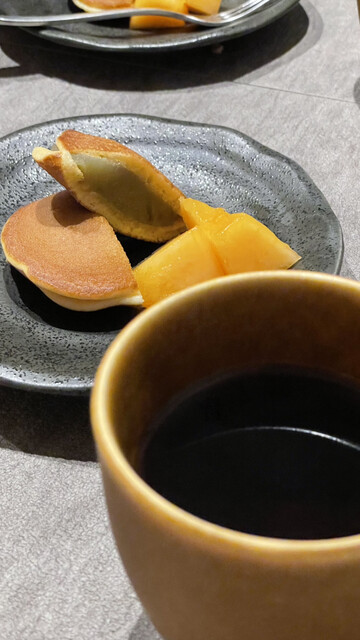 デザートは抹茶のどら焼きと