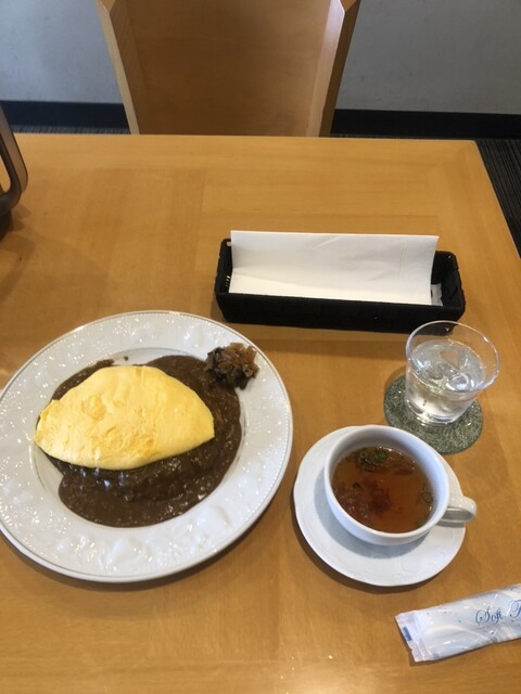 ◎◎ドライカレーオムレツのせ(中辛)スープ付き