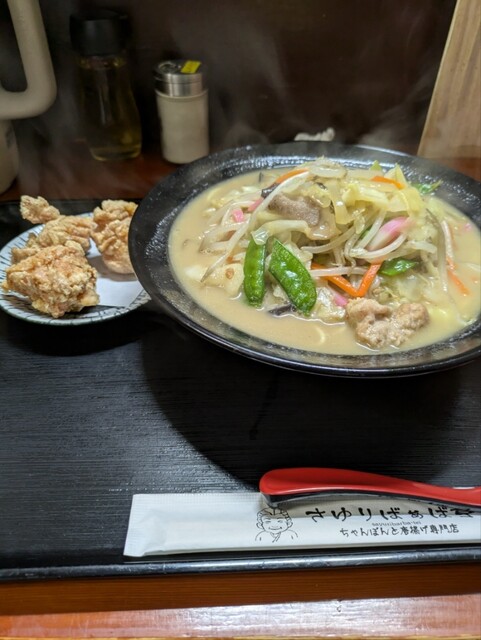 ランチで訪問しました。いつもはセットで注文しますが、今回はちゃんぽんのみ単品にしました。量もちょうどよかったです。セットだと少し多くて、ミニセットだともう少しちゃんぽん食べたくて、唐揚げがないと少し寂しかったかな?唐揚げは単品で頼めば良いかも。