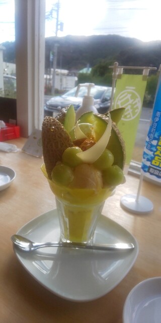 4回目の訪問です。伊豆下賀茂温泉へ遊びに行った時に必ず訪問させていただいています。開店直後に訪問し、前に一組おられました。お目当てのメロンパフェを注文しました。昨年より100円アップも想定内です。メロンが完熟でとにかく甘い。都心ではこの値段とこのクオリティでは食べられないですね。来年また再訪したいと思います。