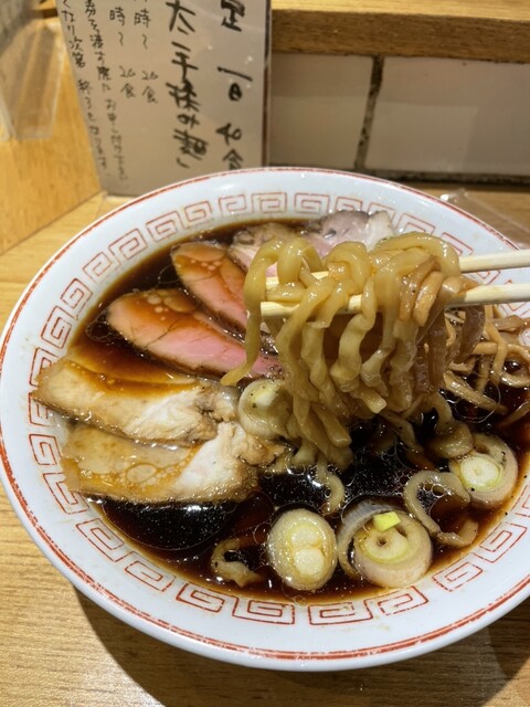 漆黒のスープ。見た目からかなり美味しそう。太めに切られたネギがまた良い。口いっぱいに旨みが広がり、かなり好きな味でした。