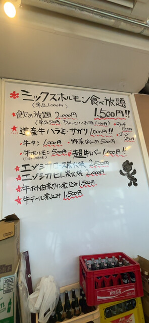 ミックスホルモン食べ放題(¥1500)を注文