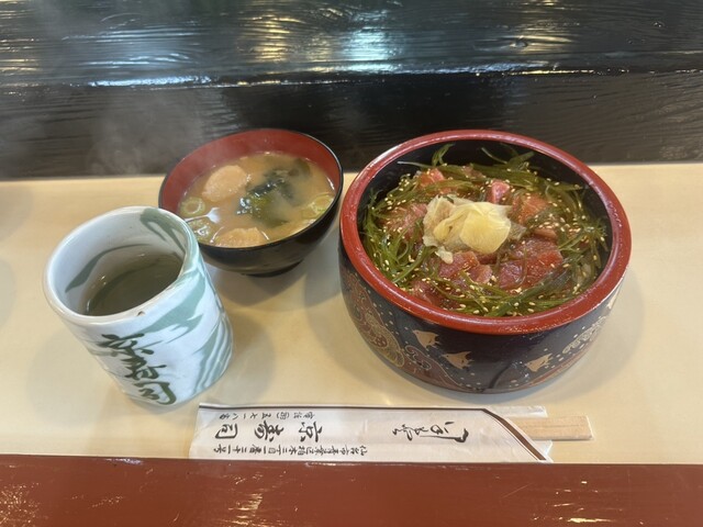 「京寿司」のランチで特に人気なのが、税込650円というリーズナブルな価格で提供される「鮪づけ丼」です。この丼は、厚切りの鮪が8切れほど乗っており、酢飯の量も多めで、ボリューム満点です。鮪の上には千切り昆布とごまがまぶされ、味わいに深みを加えています。また、みそ汁も丁寧に作られており、ランチセットとしての満足度が非常に高いです。