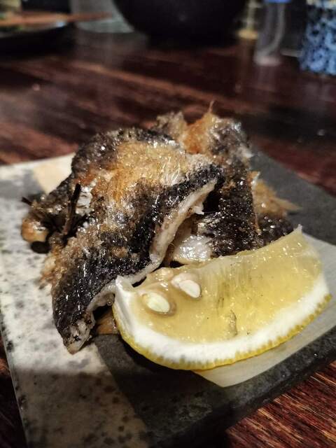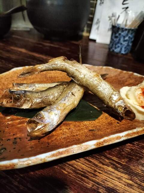 メヒカリのパリパリ焼き:この絶妙な焼き加減は、何度いただいても驚きがあります。軽い食感のあとに来る濃厚な脂の旨味は、お酒のお供に欠かせません。