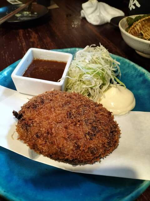 ズワイガニクリームコロッケ:サクッとした衣を割ると、蟹の身がぎっしり詰まった濃厚なクリームが。贅沢の極みです。