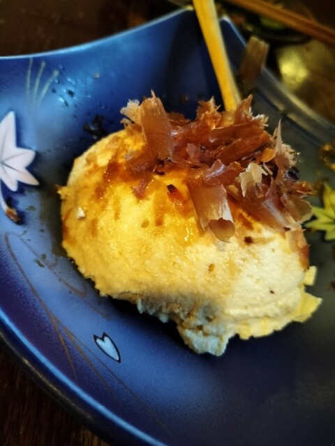 ピーマン焼き:シンプルな一皿ですが、これが侮れません。上にたっぷり乗った削り節が驚くほど香り高く、この節だけでもお酒が飲めてしまうほどの存在感。ピーマンのほろ苦さと節の旨味で、至福の酒の肴になります。