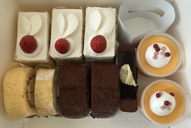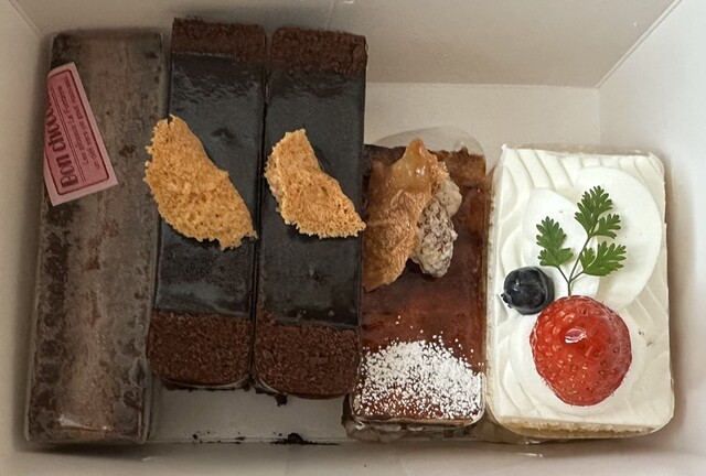 香るチョコロールは、初めて購入させていただきましたが、中央のクリームにラム酒香るレーズンが入った食感も楽しめるケーキでした。