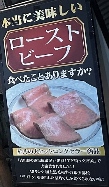 次は、美味しさが溢れてしまっているところにトドメの黒毛和牛のローストビーフです。