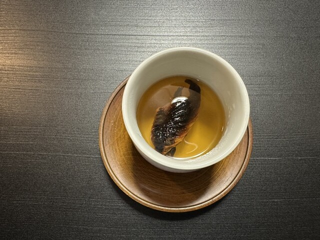 利尻昆布とかつお節で取った出汁が美味しいのですが、そこに炙ったとらふぐひれの香ばしさと旨みが加わって、めちゃくちゃ美味しい❗️