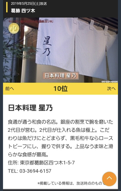 『和食の名店』と、数年前に『アド街ック天国』(TV番組)で、紹介されている創業53年の星乃さん。