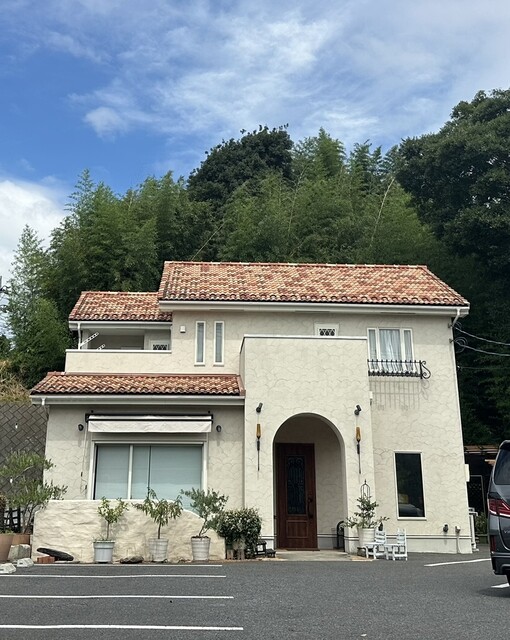 国道沿いの、豊かな自然の緑に囲まれた大きな一軒家がお店になります。