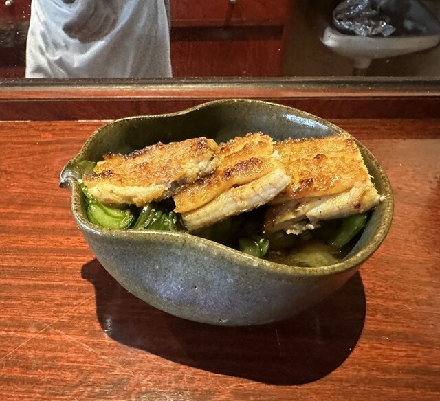 白焼よりもうなぎのパリパリ感が強く、きゅうりやもずく等の水分が多いものといただいても、食感が残っていて美味しいです。