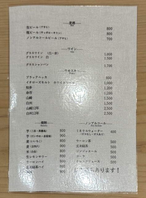 ドリンク メニュー