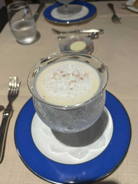 パンとフィナンシェ、3種のバター、生コンフィチュール、一番だし、ジャンボンブランと生ハム、ヨーグルト、タピオカ・オ・レ、プルーン、半熟卵、季節のフルーツ、飲むサラダ、カフェオレ