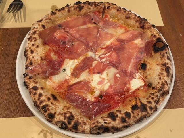 ピザはオリジナルのベッラドンナ。ワインは、ボトルメニュウもいろいろありましたが、今回はグラスで赤と白を。