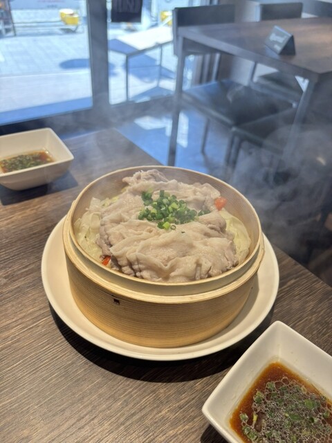 続いて「極みもち豚とたっぷり野菜のせいろ蒸し」。特製にんにくダレが、さっぱり野菜ともち豚にベストマッチ。にんにくのパンチが効いてるのに、後味は爽やか。これ、タレ界のイケメン。ポン酢も選択できるようでした。でもね、私は選びました。特製にんにくダレを。この後のデート???も、犠牲にしてでも選ぶ価値がある味だったんです。