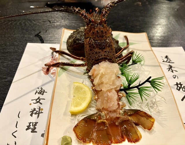 黒潮に育まれた徳島県宍喰町の新鮮な海鮮を、素材を活かした調理で提供する人気店。伊勢海老/鮑/車海老/サザエ等を刺身や豪快焼きで食す。たいへん美味しいです