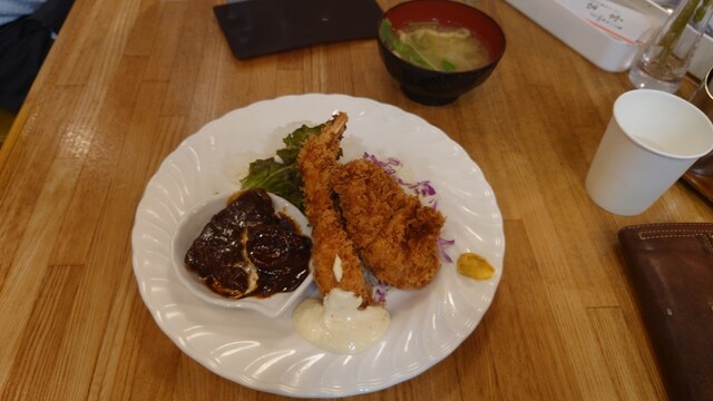 ビーフシチュー、柔らかくてめちゃめちゃ美味しかった。海老フライもヒレカツも安定の美味しさです。