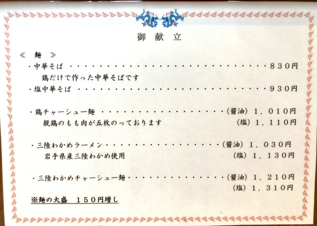 前回は「塩中華そば」だったこともあり、今回は基本の「中華そば(醤油味)」をお願いしました。