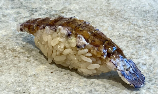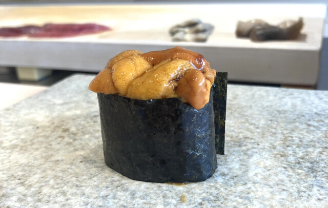 ネタは泥障烏賊・蝦蛄海老・小鰭・北寄貝・蛤が好みの味わいでした。蛍烏賊をミンチ状にしたのも珍しくまた車海老のネタを人肌の温度まで温めており、海老の旨みを十分に堪能させてもらいました。