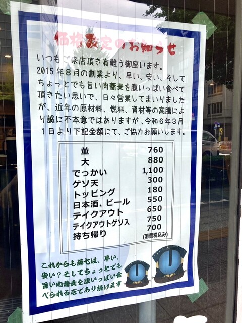 肉そば藤七勾当台公園、北四番丁、広瀬通/そば、ラーメン、郷土料理