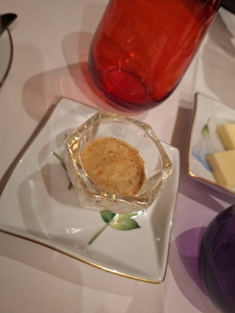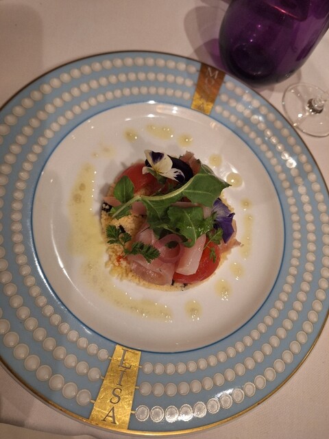アミューズブーシュ、、お皿とお皿の間の花びらが素敵~