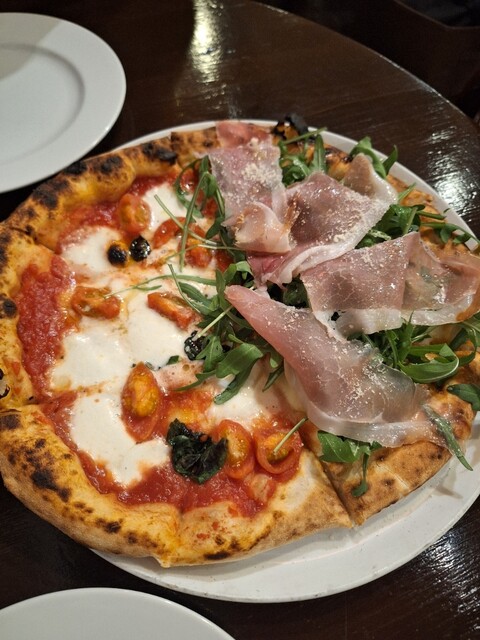 私はすべておいしい~、と大満足だったのですが、、一緒に行った家族は「ピザが熱々じゃない~」と少しがっかりしたようでした。ピザ窯から出てきた出来立てを、あつっ!と言いながら食べる、、というのを予想していたようで、確かにそこまで熱々ではなかったかな~。あるいは、ピッコラターヴォラというピザはフレッシュなルッコラと生ハムが後乗せされているのですが、、出来立て直後に乗せると、ルッコラとハムに火が入ってしまうから、あえて温度が少し下がるまで待つ?のかな、とも、思いました。