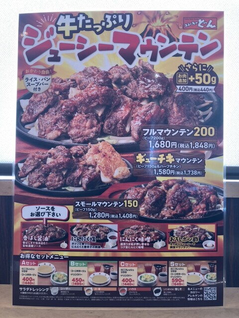 メニュー拝見すると… ステーキ屋さんで