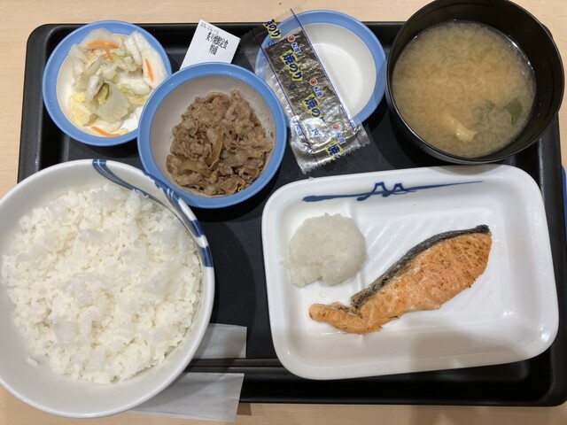 今日の朝は、松屋@金沢八景にて、炙り焼鮭定食を食べてみました。美味しかったです。