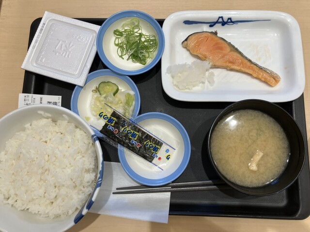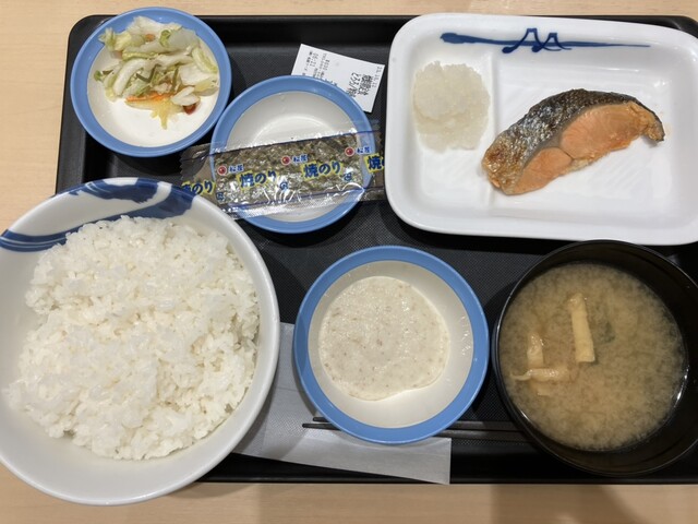今日の朝は、松屋@金沢八景にて、焼鮭定食とろろを食べてみました。美味しかったです。
