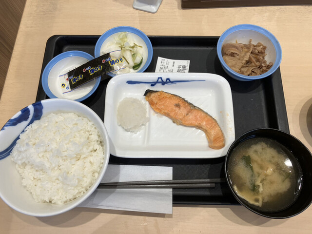 今日の夜は、松屋@金沢八景にて、焼鮭定食を食べてみました。美味しかったです。