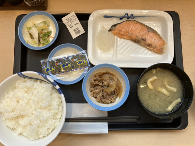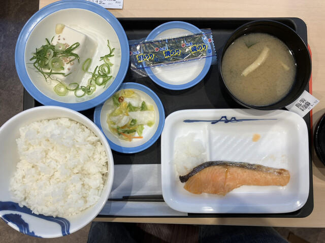 今日の夜は、松屋@金沢八景にて、焼鮭定食を食べてみました。美味しかったです。