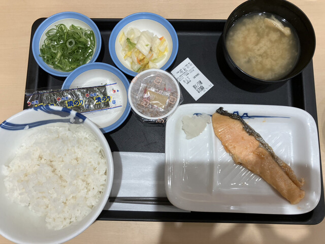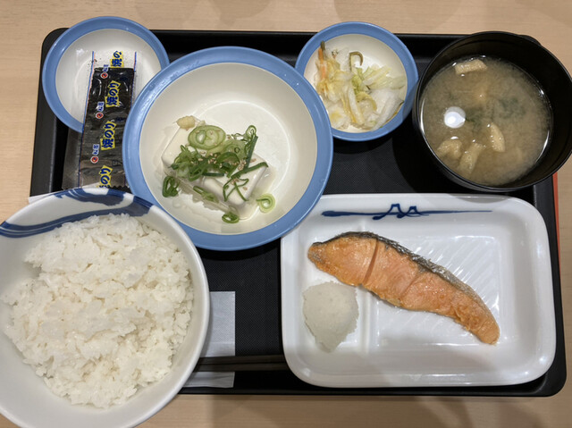 今日の朝は、松屋@金沢八景にて、焼鮭定食納豆を食べてみました。美味しかったです。
