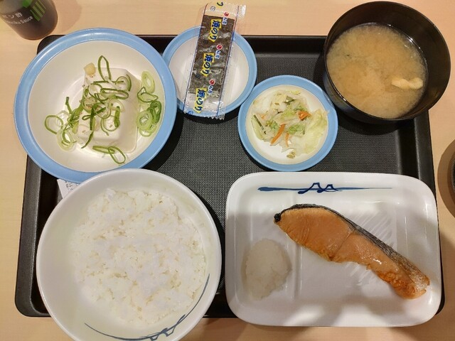 今朝は、松屋@金沢八景にて、焼鮭定食納豆を食べてみました。美味しかったです。