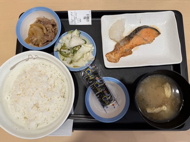 松屋にて、ソーセージエッグ定食納豆特盛を食べてみました。おいしかったです。昼ごはんです。