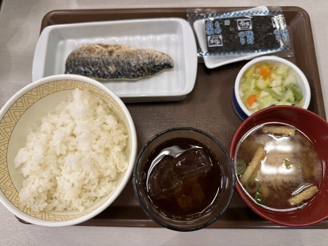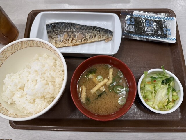 すき家にて、塩さばたまかけ朝食を食べてみました。おいしかったです。朝ごはんです。