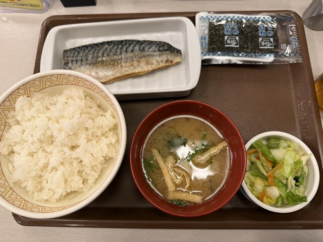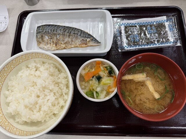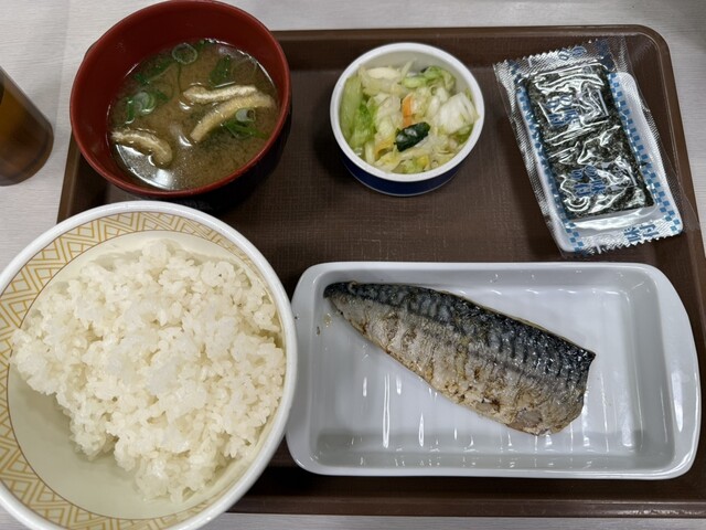 すき家にて、さば定食を食べてみました。おいしかったです。夜ごはんです。