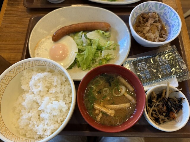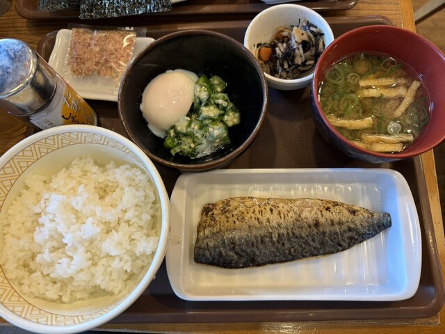 すき家にて、塩さばまぜのっけ朝食を食べてみました。おいしかったです。朝ごはんです。