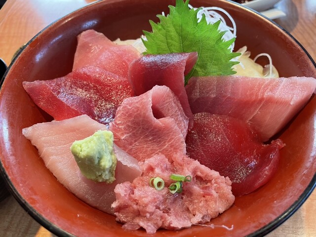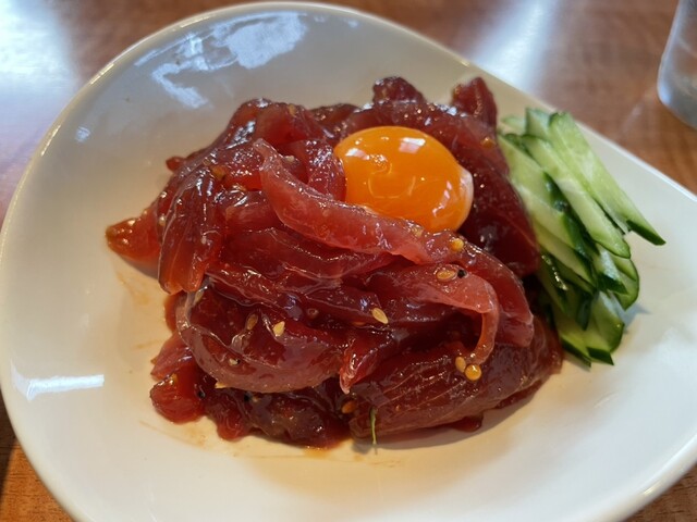 マグロ丼とサイドメニューにマグロ焼きとマグロのユッケを頼んだ。マグロの分厚さと新鮮さがただただ幸せだった。おそらく1年分のマグロを今食べた。