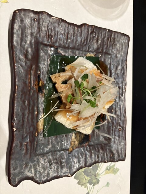 本日はコースをいただきました。最初の前菜は旬彩3種盛り合わせ。梅水晶のコリコリとした食感、優しい甘みのコンポタ風の練り物、さっぱりしたほうれん草和えと、どれもバランス良く仕立てられていました。造里はまぐろ、はまち、たいの3種。鮮度抜群で歯ごたえも良く、特にたいの旨味が印象的でした。焼物は鱧の薬味焼き。ふっくらとした鱧の身に薬味の香りが加わり、夏らしい清涼感を感じさせてくれました。
