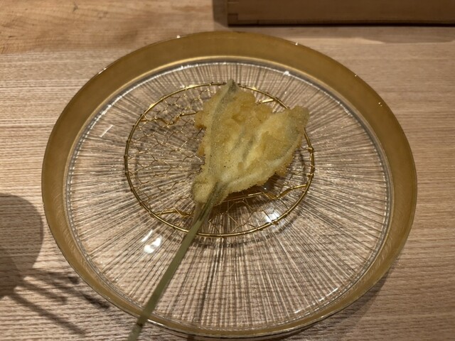 全体的に衣がサクサクなのに薄い味わったことの無い串揚げでした。鯛は中がほくほく出だしから期待させる串揚げでした。初めに苦手なものを聞いて下さり、ラインナップを変えていただけました。