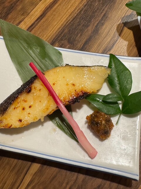 銀鱈の西京焼きも外せない。香ばしく焼き上げられた表面と、しっとりとした身のコントラストが見事で、味噌の甘みが日本酒と抜群に合う。炉端で焼かれることで香りが立ち、運ばれてきた瞬間から期待値が一気に上がる。