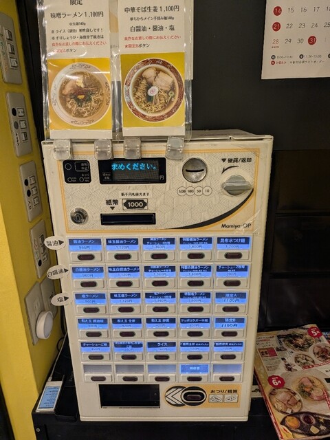 食券をカウンター上段に置くと、醤油、白醤油、塩選べます。と聞かれたので、塩にしました。