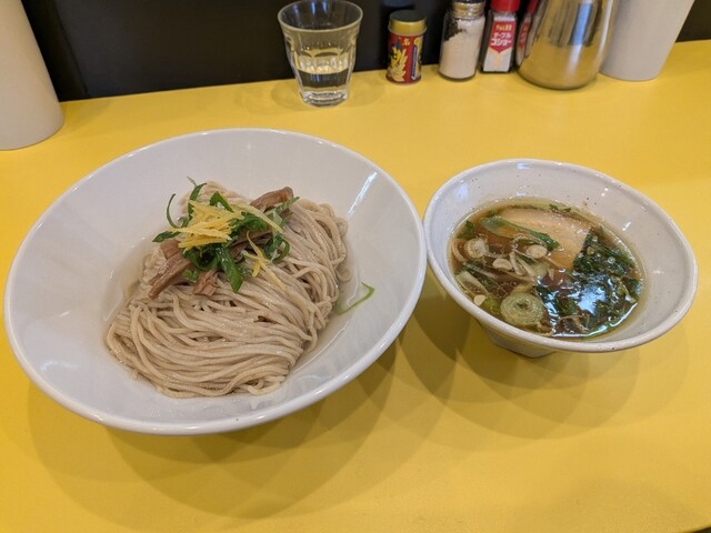 麺は半分ほど付けて食べると冷た熱くて美味しい。